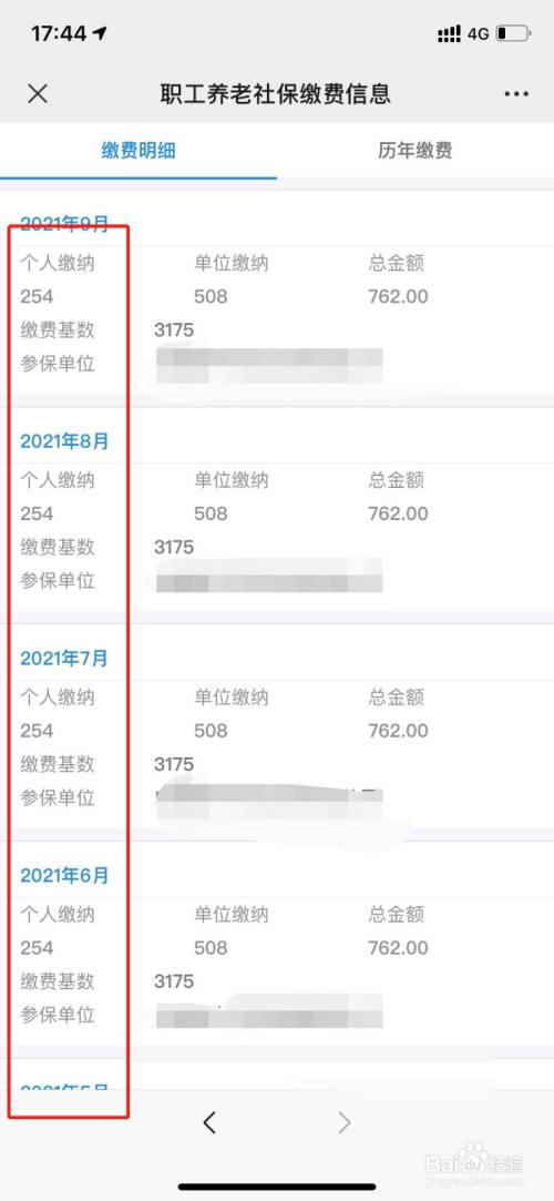 在此页面就可以看到每月缴费明细了,点击历年可查看历年缴费明细了。