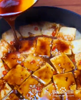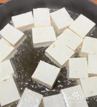 起锅烧油,将豆腐煎至两面金黄