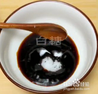 在空碗中,加入三勺生抽、一勺醋、一勺白糖、一勺耗油、一勺淀粉,搅拌均匀