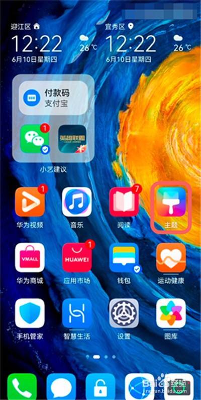 1、打开【主题】app,点击【我的】。