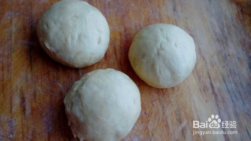拿出面团,揉几下排气,不然烤出的面包会有洞洞。然后平均分三份。