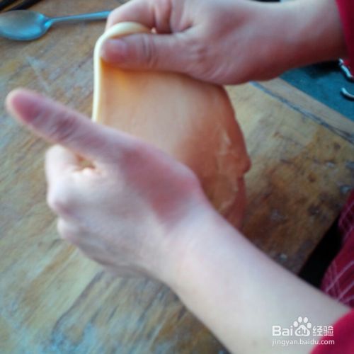 继续揉,当呈下面情况时,说明已到完全阶段。(这次的面不太好,其实膜还可以更薄些的。)揉面就成功了。