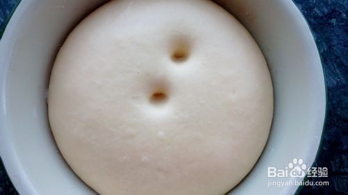 将面团放到容器内盖上盖子,发酵。当发到是原来的2倍大时,用手指按下去不反弹,视为发好了。
