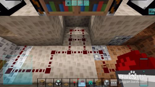 然后在粘性活塞旁边放一个方块,方块上面放一个红石。