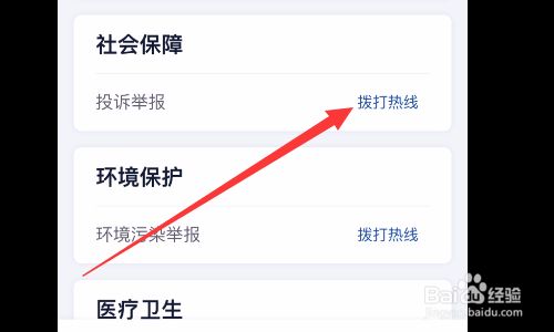7.点击社会保障,拨打其热线进行举报投诉即可