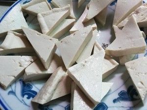 锅里放油,稍多点,豆腐放入煎成两面金黄,一定要一面黄了后再翻面