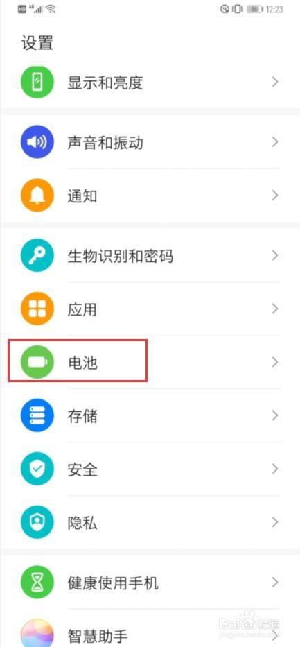 进入手机的设置功能,选择其中的电池,并点击进入。
