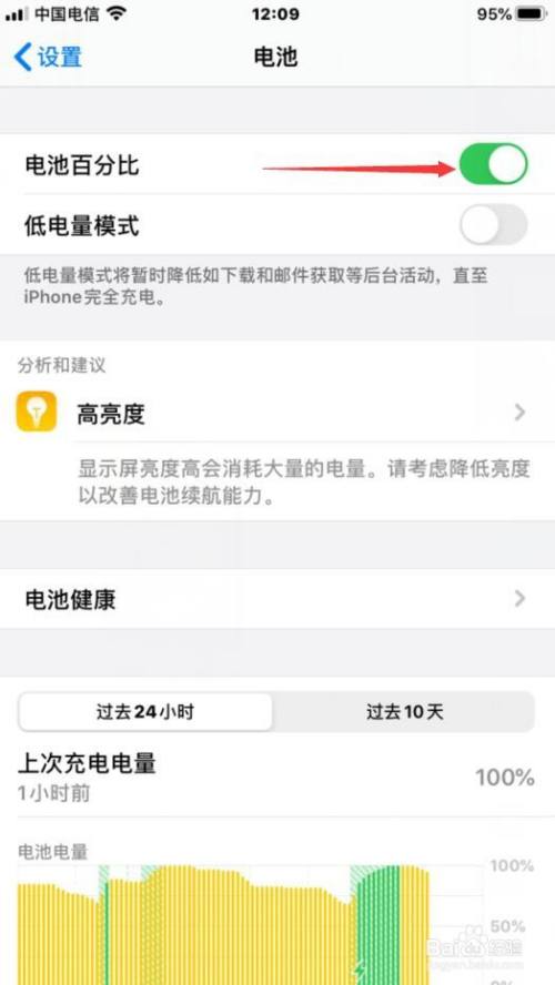 打开电池百分比后面的按钮,上面的电池标识前面就会显示当前剩余电量的百分比。
