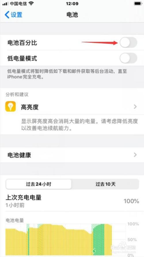 进入电池设置之后,可以看到电池百分比后面的按钮是关闭状态。