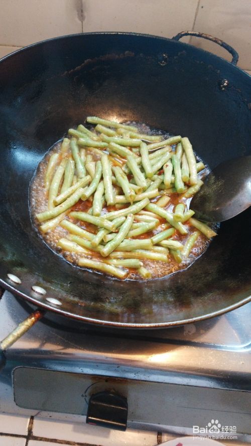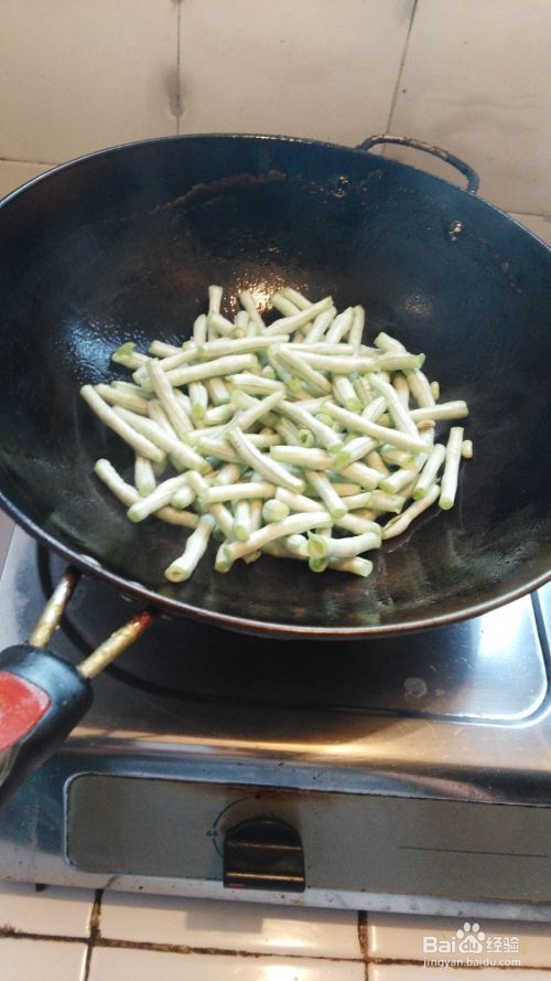 将豆角倒入锅中;