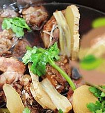 野兔锅中焖半小时左右撒入香菜可出锅。