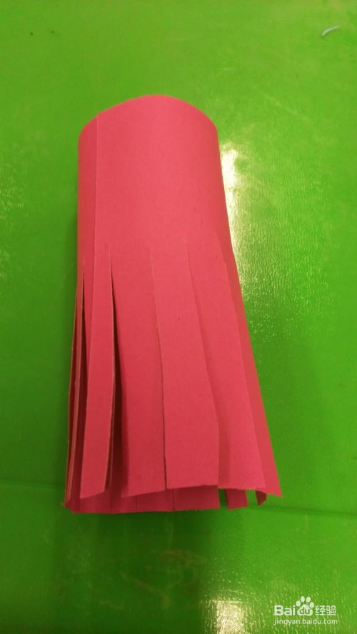 粘住以后将下面的用剪刀剪成一条条的,剪的时候尽量剪多一点,卡纸的一半以上稍多一点就行。