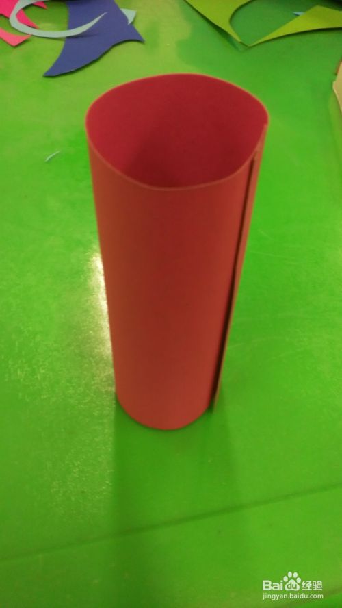 首先将一张卡纸做成一个圆筒,用双面胶粘住。双面胶粘在里面,好看一点。
