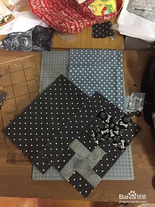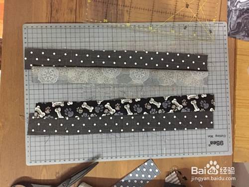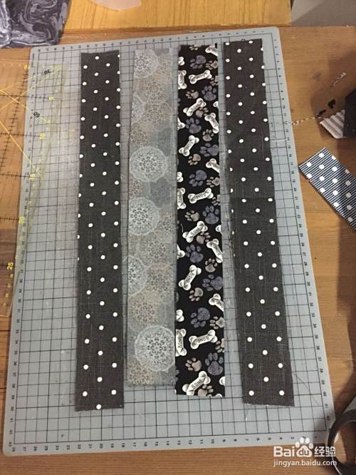 选三种颜色的布料,切成4.5Cm宽度的四个长条。长条长度不低于32Cm