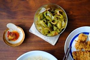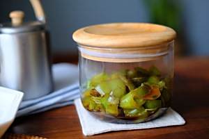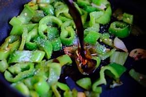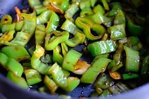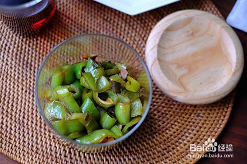 一勺糖,两勺生抽快速翻炒一下马上关火腌着辣椒,随吃随取。