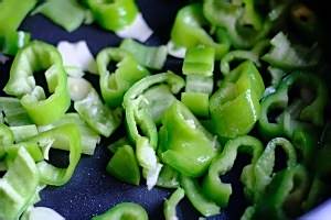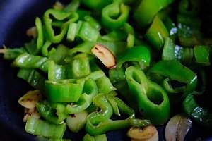 蒜切片,辣椒随意切切,当然不要太大,不好入味。少许底油烧热,放入蒜片和辣椒翻炒。