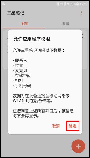 3.阅读弹出的“允许应用程序权限”提示后,点击【确定】。