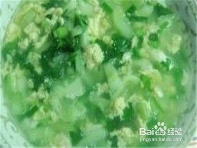 六,老黄瓜鸡蛋汤,将老黄过一分为二,去除老黄瓜籽,然后带皮切成小丁,越小越好,放在一旁备用,将鸡蛋打到碗里搅拌好,然后锅里放油至八分熟时放入老黄瓜丁,翻炒至出汁,然后放入打好的鸡蛋液,不断搅拌,然后放入适量的水,水开后放入葱和适量的盐即可