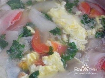 三,西红柿老黄瓜汤,首先将老黄瓜去皮去除瓜籽,然后将黄瓜刮成长条状的薄片,西红柿切成丁备用,然后锅里放油,等油温到八分熟时,放入葱爆香,然后放入黄瓜薄片,翻炒至黄瓜片两三次,倒入西红柿丁,放入适量盐,然后小火熬着至西红柿融化,然后倒入适量水就可