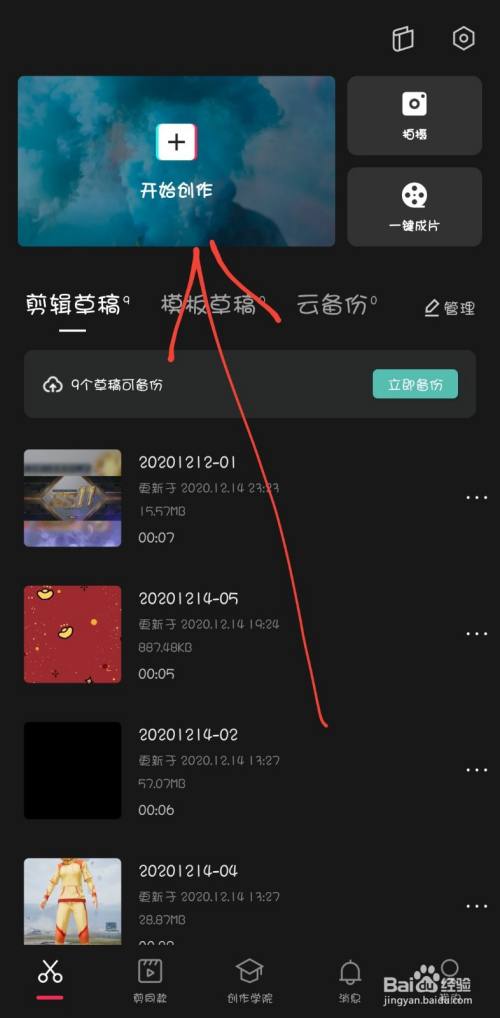 1.打开剪映,点击开始创作