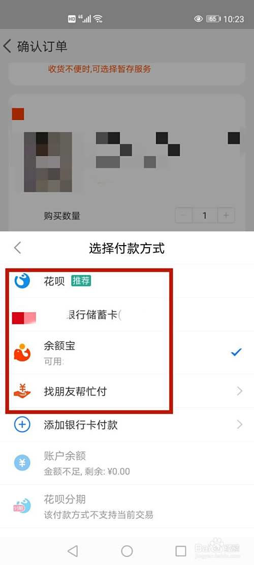 可以看到在所有的付款方式中,除了支付宝和银行卡,不能使用其他付款方式。
