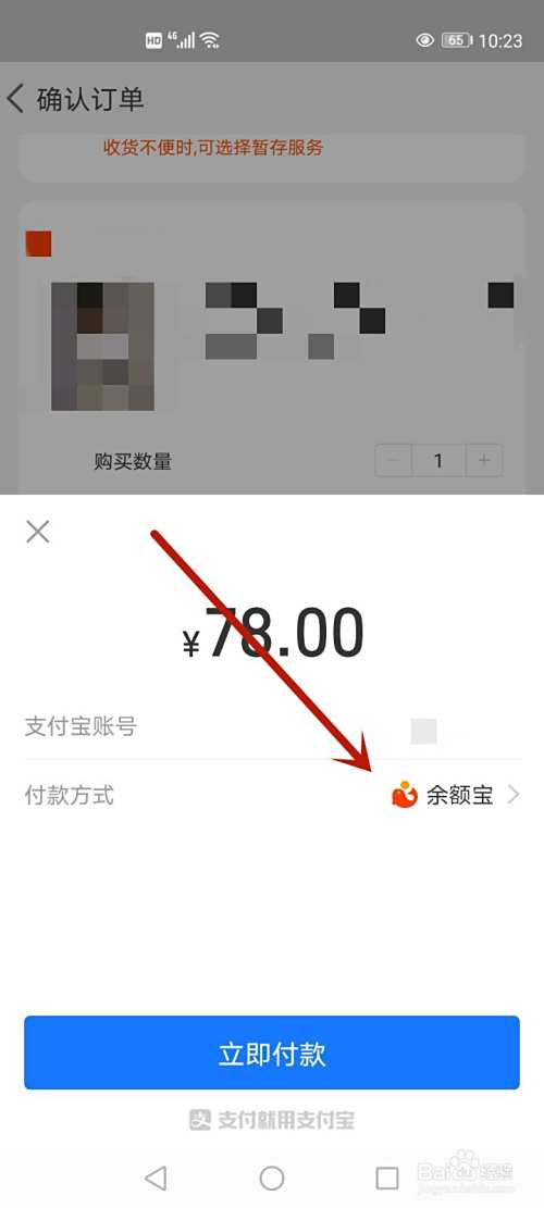 在付款页面,点击【付款方式】。