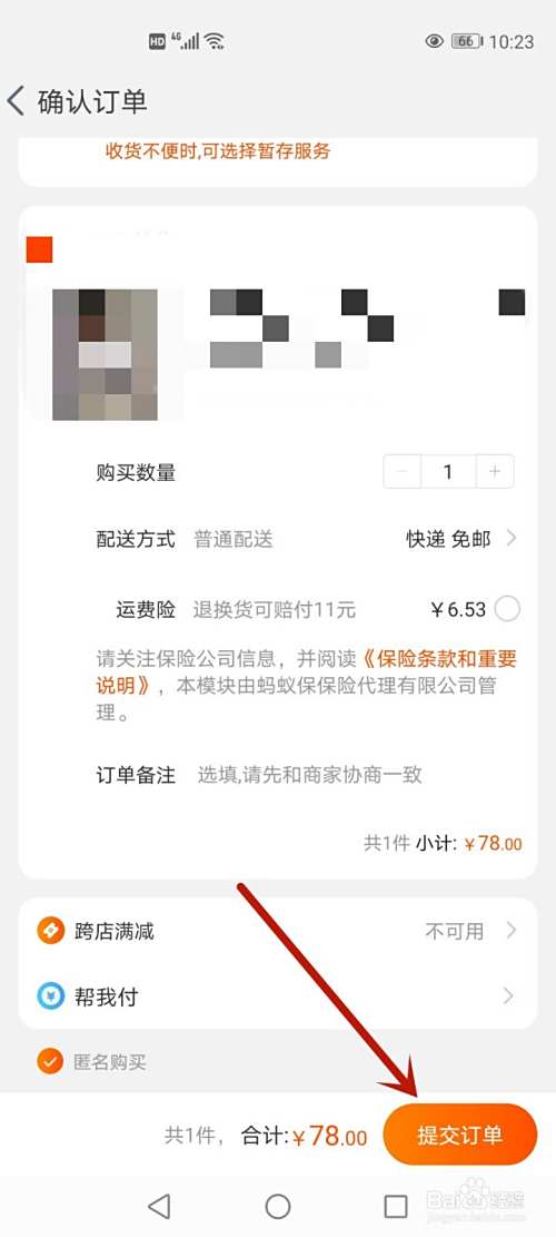 确认商品,点击【提交订单】。