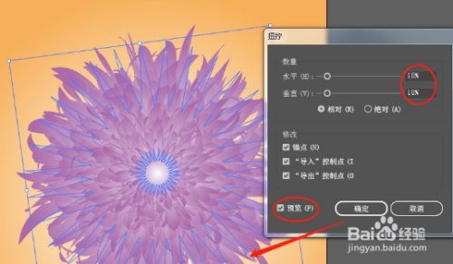 然后,在点击上方菜单栏效果——扭曲和变化——扭拧,然后修改参数值,可以参考小编的,在点击预览。