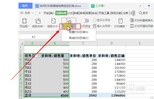 成功选择后,点击打印预览确定只打印选定区域,则可完成设置。