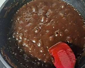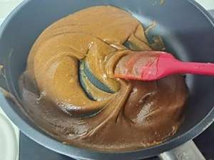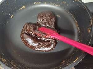 把打好的核桃煳放到不粘锅,大火烧开,期间要不停地翻拌,沾到锅边的红枣煳也尽量刮到锅内。大约十分钟后,加入木薯淀粉水,调小火继续烧制,五分钟后加黄油,盐,柠檬汁,继续不停地翻拌。总之这个过程比较痛苦,还好我做的量不大