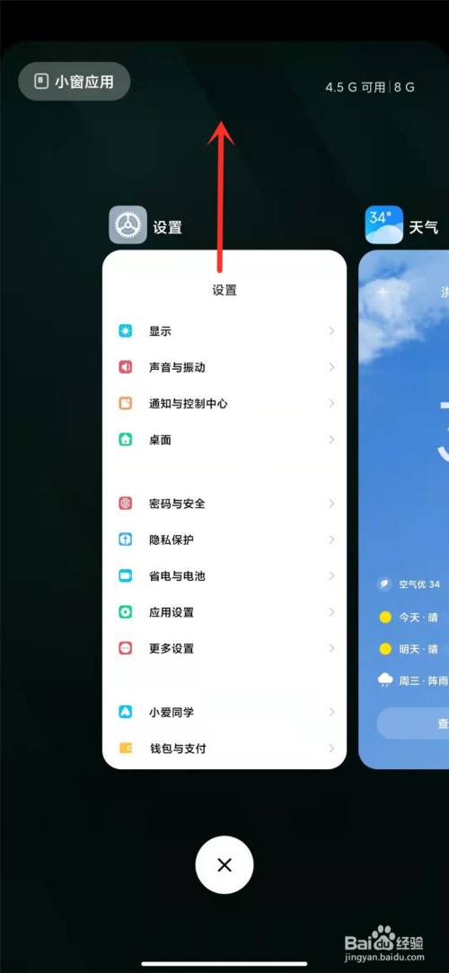 进入手机设置界面,点击【桌面】进入桌面设置界面,点击【最近任务样式】进入,选择【横向排布】,即可设置上滑关闭应用。从屏幕底部向上滑并停顿,左右滑动,选择要关闭的应用,向上滑动卡片,即可关闭应用。