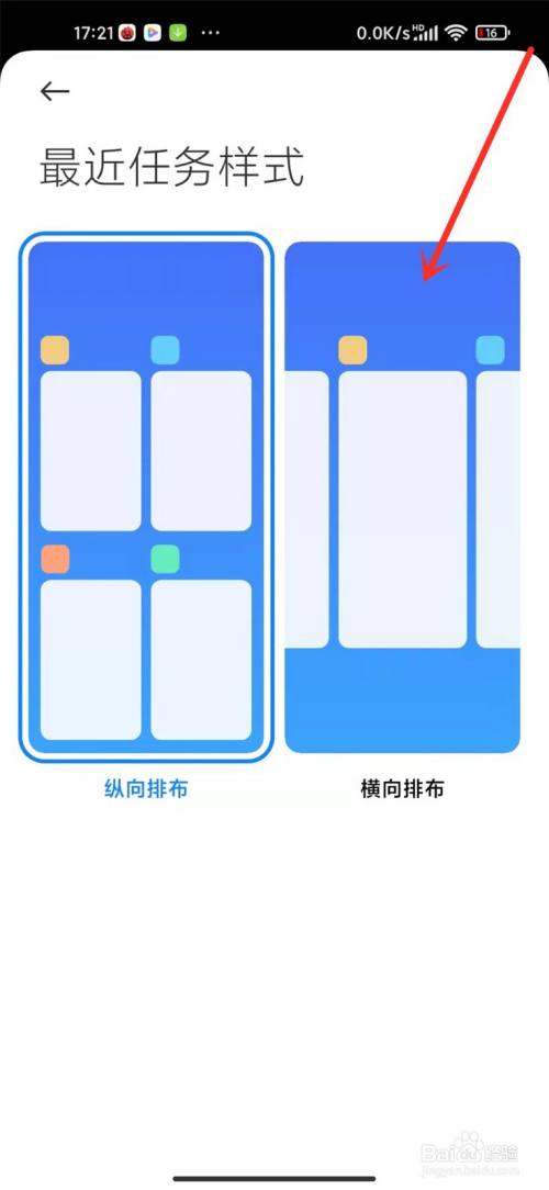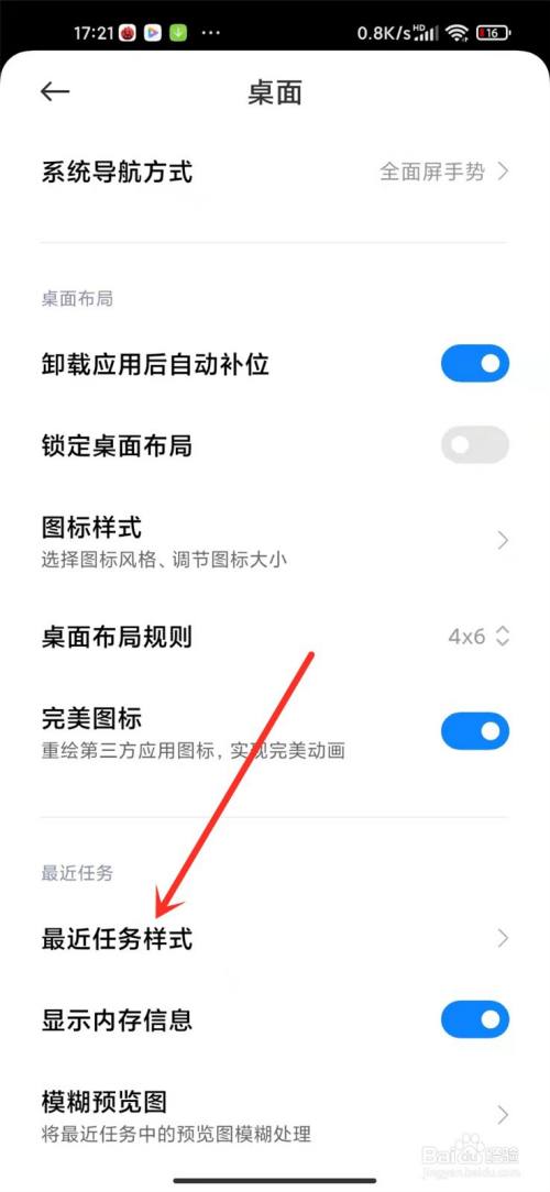 下拉页面找到【最近任务样式】,点击进入样式选择界面。