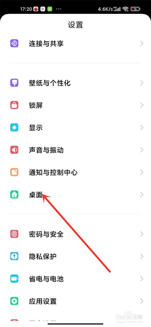 进入手机设置界面,点击【桌面】,进入桌面设置界面,