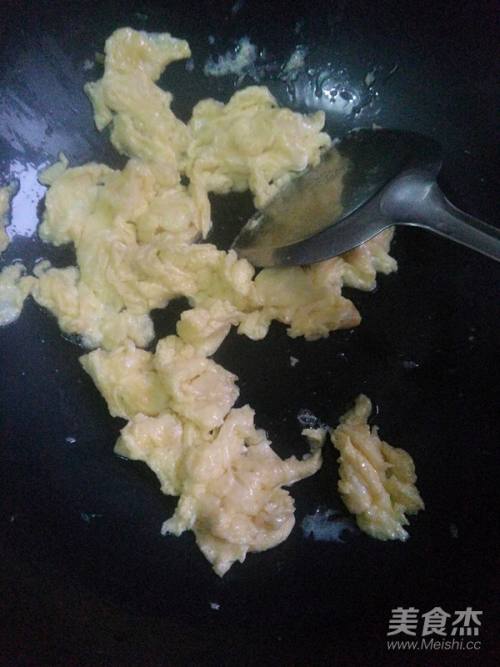 5热锅倒油烧开,倒入鸡蛋液煎至成型后划散,盛出备用