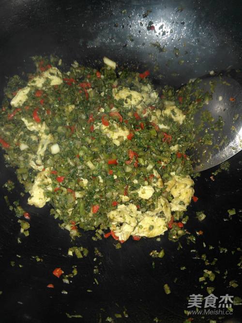 8放煎好的鸡蛋混合,淋入生抽翻炒均匀,即可出锅