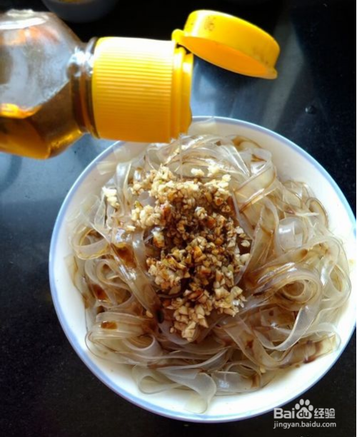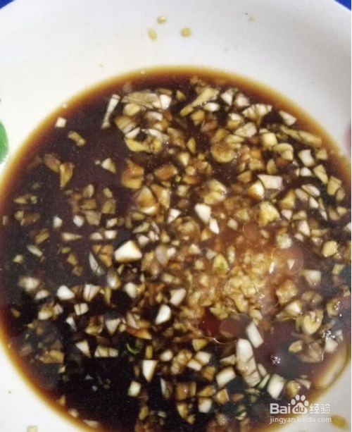 加入适量的作料,生抽、蚝油、少许盐和醋、鸡精、芝麻油