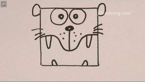 6在正方形两角出画狮子的耳朵,脸上画几根胡须。