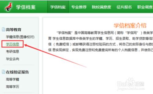 最后,登录成功后,在左侧导航中,点击“学历查询”链接查看学历信息。