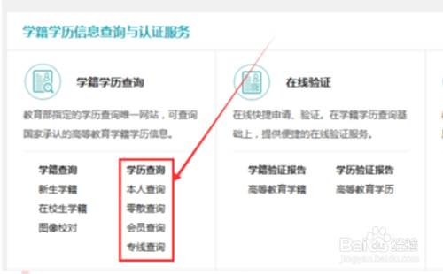 2.找到学籍学历查询模块,点击学历查询,本人查询链接。