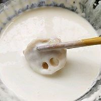 起锅烧油,藕片挂上面糊