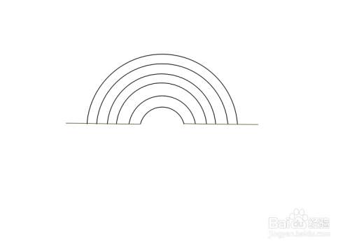 然后在步骤3的基础上,画出彩虹的第四道和第五道。