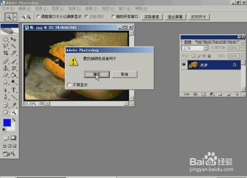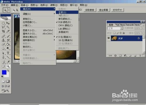 在菜单栏中,点击“图像”—“模式”命令,如果要讲图像转换为“灰度”模式,则点击“灰度”,在弹出的对话框中,点击“是”,如图: