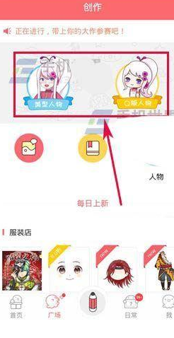 在进入了创作页面之后,选择页面中的“+”按钮来创建属于自己的美型角色。接下来去选择好自己创建人物的性别,然后进行服装和外形的设置,从而创建出自己喜欢的角色,之后点击右上方“下一步”按钮。