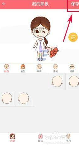 根据展示的头部服装等功能进行人物创作,创作好之后点击右上角【保存】,最后在弹窗中输入形象名,并点击【确定】就可以了。