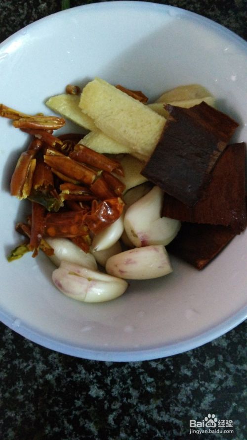 将姜、蒜、干辣椒、桂皮洗净切好;