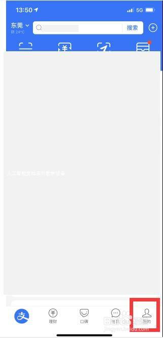 登录、进入支付宝首页,点击右下角的【我的】,如图;