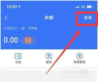 进入【余额】界面,确实没有收支明细的入口,如图;点击右上角的【管理】;
