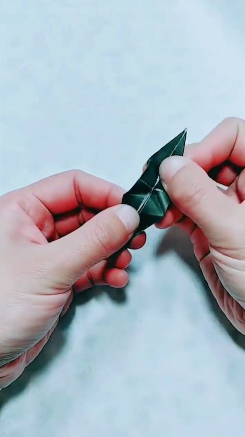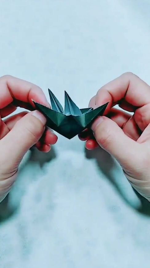 54个角全部折完以后,将折纸拉开。