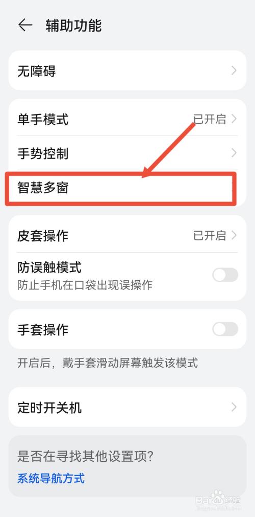 打开华为手机设置,点击辅助功能,开启智慧多窗应用栏,即可设置成两个界面。