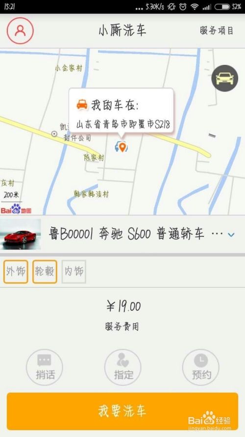 查看自己的个人中心有没有优惠券,如果有,最后下单时可以使用。下面就是定位你的位置,车型以及要清洗车的范围,比如车身、车毂等等,选择好后,系统会计算出所需要的费用,点击我要洗车